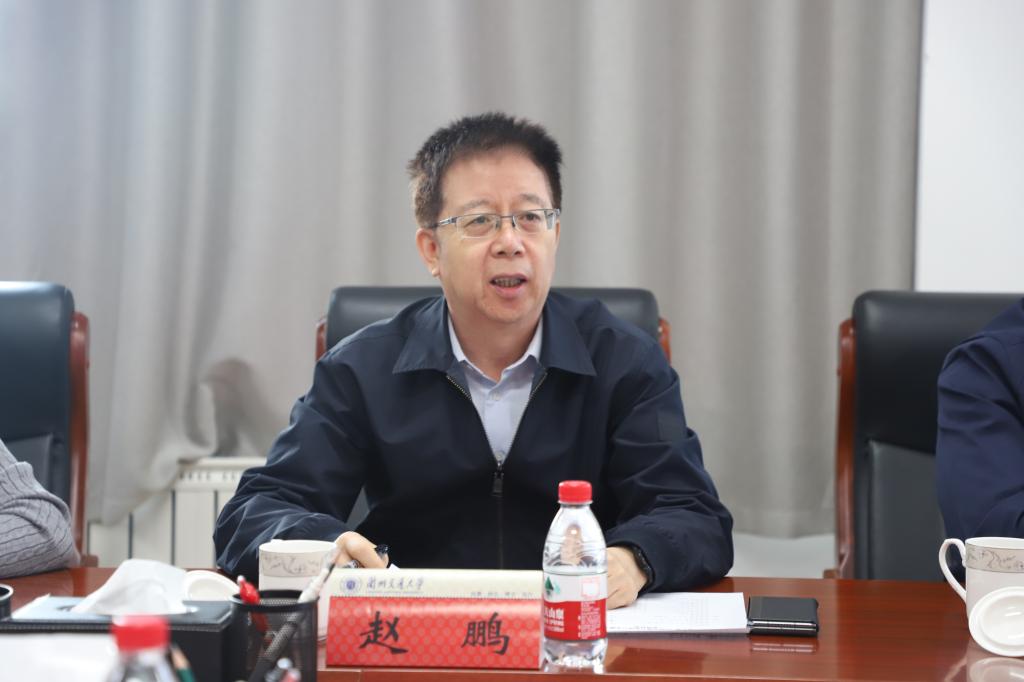 北京交通大学副校长赵鹏作讲话,他表示,接下来要对照对口支援工作方案,列出清单,从具体的事情做起,逐步深化合作,在拔尖人才培养、学术交流、科研合作、重点实验室开放课题、图书资源等方面重点支持兰州交大,将对口支援工作落到实处。