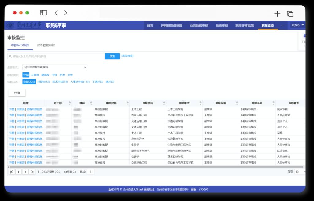 学校充分发挥职称评审的“指挥棒”作用,以吸引、用活和培育人才。自职称评审模块上线后,通过与知网的科研系统做集成,实现数据自动带入、一键导出报表等便捷操作,显著减轻教职工和审核人员的工作负担,提升职称评审的公平性和效率。值得一提的是,甘肃省已建有职称评审平台,校内评审通过的人才可直接在该平台上进行信息填写。此外,平台还支持在线投票功能,能够实时监控投票过程,自动统计票数,并支持一键导出投票汇总表以便打印签字存档,为职称评审工作提供了更为公正、客观、高效的评价方式。