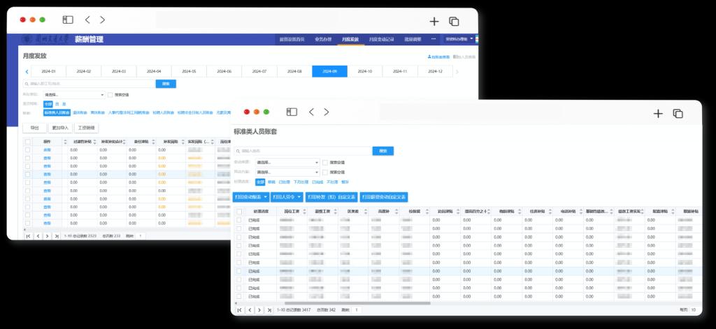 薪酬福利是教职工最为关心的问题之一。平台在薪酬福利方面提供了薪酬管理、绩效津贴、社会保险等全面服务。薪酬管理系统能够自动抽取影响工资的数据,快速完成工资变动,自动生成对应工资表及变动单等。社保管理则通过获取薪资项数据来参与计算,快速计算社保扣款,实现了社保的线上办理和基数调标。