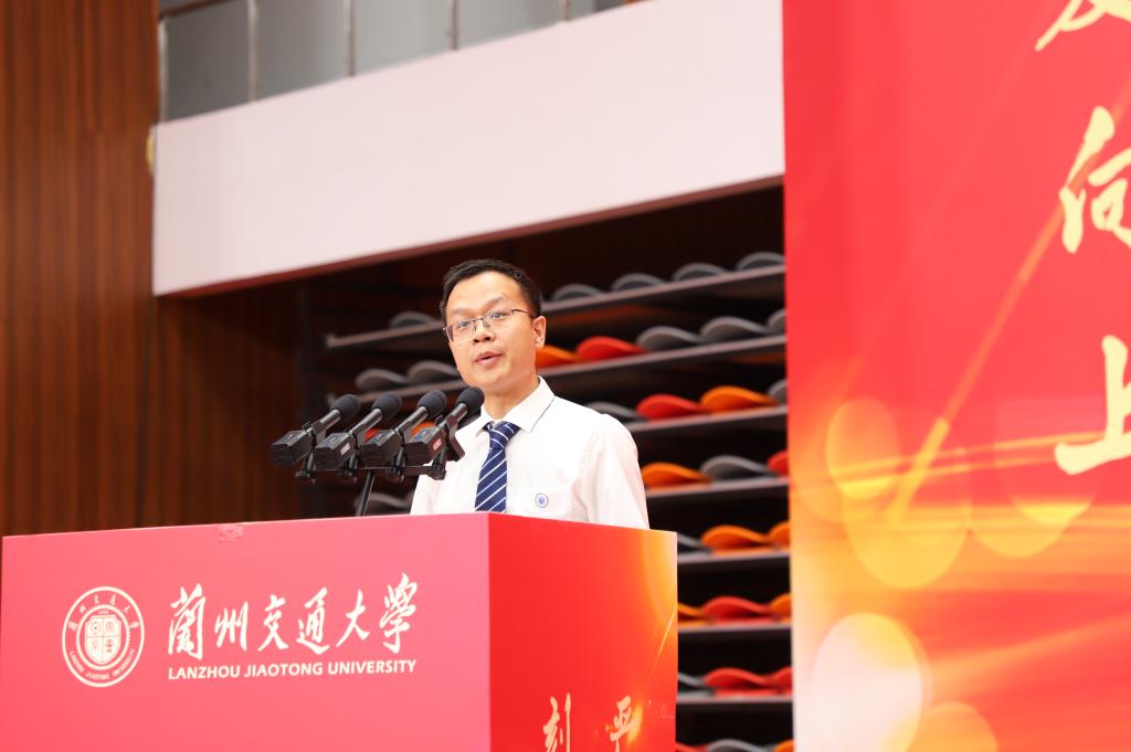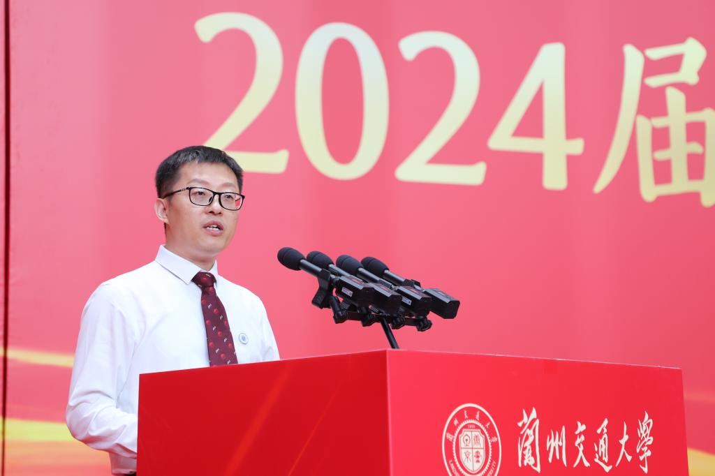 狄生奎代表学校向毕业生们送上热烈的祝贺和美好的祝福,并作题为《以青春之名 赴时代之约》的讲话。他表示,求学时光镌刻了同学们不平凡的青春印记,学校见证了同学们从青涩懵懂到坚定自信,看到了大家在青春赛道上奋力奔跑的模样,看到了新时代兰州交大学子的责任与担当。同学们也见证了学校的快速发展,见证了学校坚定地走出了一条以轨道交通为核心的特色办学之路。在新征程上,学校将主动融入教育强国、交通强国战略,推动教育、科技、人才协同发展,积极培育新质生产力,赋能高质量发展。