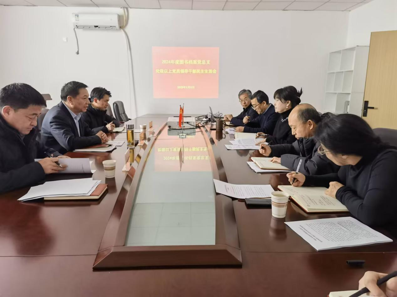 1月6日上午,图书档案党总支在图书馆11楼党建工作室召开了2024年度处级以上党员领导干部民主生活会,这次民主生活会的主题是:深入学习贯彻习近平新时代中国特色社会主义思想,巩固深化党纪学习教育成果,综合发挥党的纪律教育约束、保障激励作用,为进一步全面深化改革、推进中国式现代化提供坚强纪律保证。会议由党总支书记夏红辉主持,校党委常委、副校长、学校督导组第三组组长朱廷珺一行到会指导。