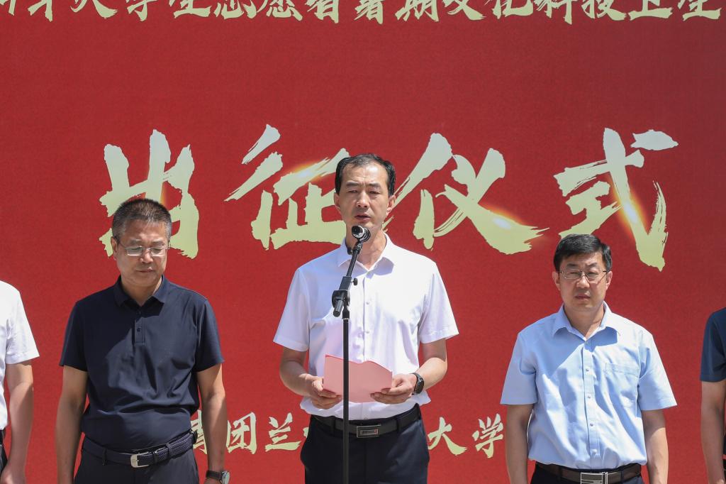 陈光武宣布兰州交通大学2024年暑期“三下乡”社会实践团出征。