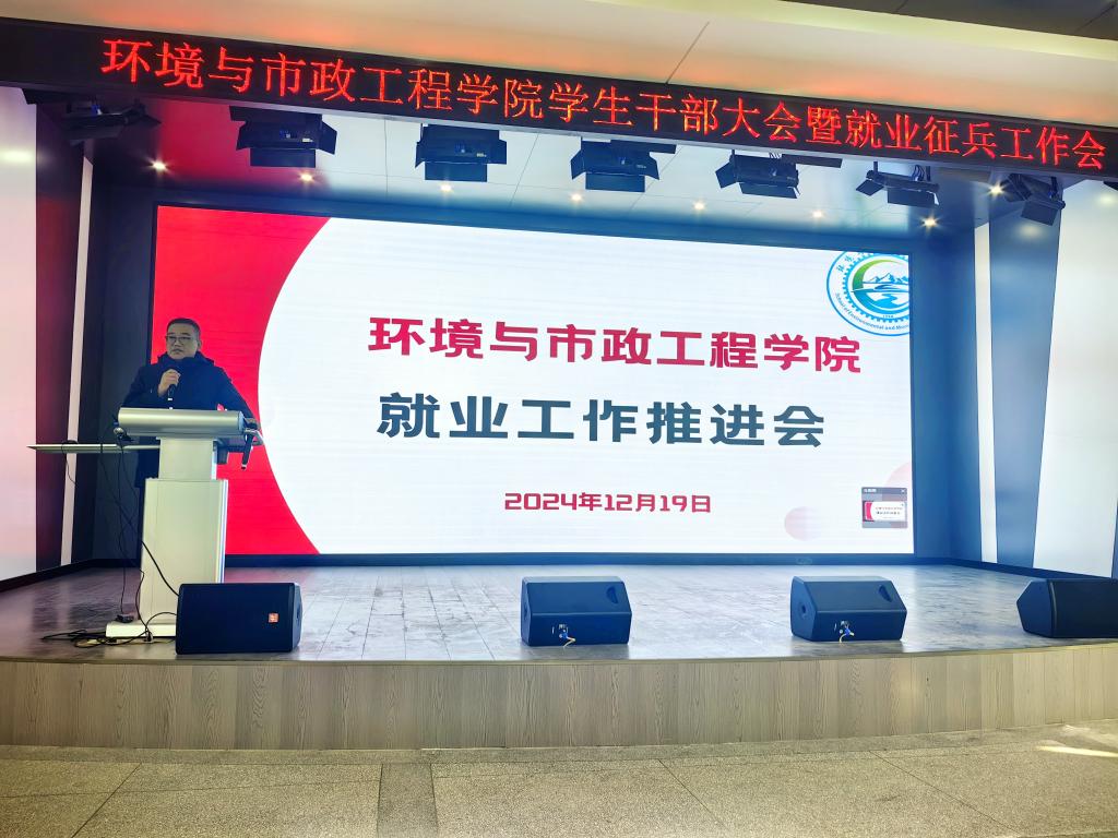 12月19日下午,环境学院在五教学楼萃英厅隆重召开学生干部大会暨就业征兵工作会。学院领导、各职能部门负责人、辅导员及学生代表200余人参加会议。