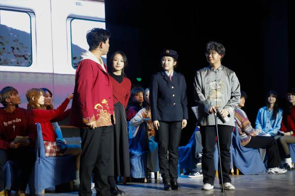 大幕开启,四段精彩剧目依次呈现。《雪域守望》以青藏铁路建设为背景,刻画李启明与杨东孙在冻土路基稳定性技术攻关中爱情与事业的交织与抉择,展现铁路建设者们在极端环境下的智慧与勇气,歌颂主人公对生态保护的深刻认识和崇高情怀;《天堑挚望》展现兰渝铁路建设中,常春玉和胡友生三代工程师家庭坚守岗位,攻克高含水量砂层隧道施工难题的感人故事;《铁骨忠孝》聚焦包兰铁路领军工程师杜毅的“忠孝”抉择,彰显铁路建设者的家国情怀和责任担当,弘扬国家铁路建设中的个人牺牲与岗位奉献精神;《丝路颂歌》以新年春运车厢中发生的故事为背景,刻画几代兰交大校友献身铁路事业的精神风貌,诠释铁路人的责任与担当,展现基层铁路人在平凡岗位上的不平凡篇章。这场融合了艺术魅力、教育意义与深厚情怀的演出,博得了在场观众的阵阵掌声与热烈喝彩。