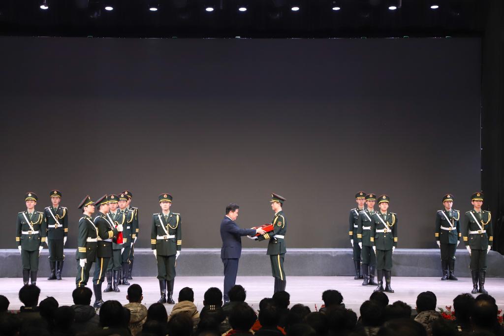 新元肇启,华章日新。1月1日,学校在大礼堂隆重举行天安门广场国旗迎接仪式,以特殊而难忘的方式祝福伟大祖国繁荣昌盛,学校事业蒸蒸日上。全体校领导、中层干部、师生代表和校国旗班成员怀着无比崇敬与激动的心情,共同迎接庄严神圣、意义非凡的天安门广场国旗,共同见证这份荣耀与使命的传承。校党委书记狄生奎出席活动并为师生讲授爱国主义教育课。仪式由党委副书记、常务副校长聂磊主持。