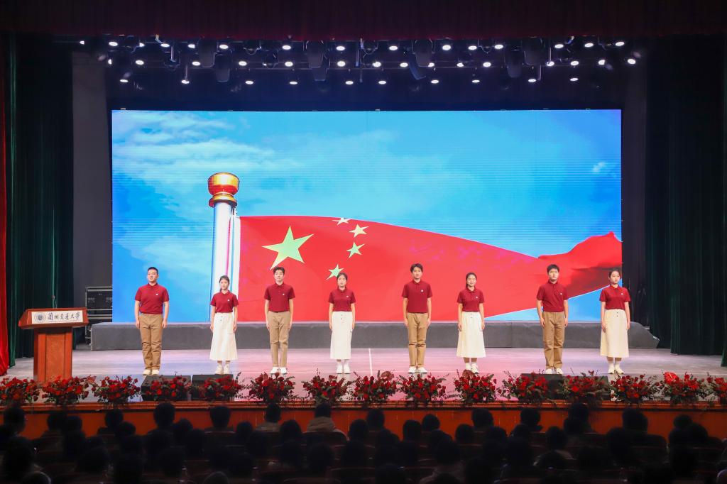 狄生奎强调,此次国旗迎接仪式是一次难得的爱国主义教育洗礼,是一堂别开生面的思政大课,学校将认真答好新时代爱国主义的答卷,深刻思考“教育强国,交大何为”,办好让党放心、人民满意的大学,以强烈的爱国之心、报国之志,续写辉煌篇章。狄生奎提出三点期望与大家共勉。一是全校上下要凝心聚力、改革创新,奋进新时代,彰显新作为。要以服务中华民族伟大复兴为重要使命,聚焦“培养什么人、怎样培养人、为谁培养人”,不断加强和改进新时代思政课教育,以深化“三全育人”综合改革为牵引,推动实施新时代立德树人工程,努力培养更多让党放心、爱国奉献、堪当民族复兴重任的时代新人。要锚定高水平大学建设目标不放松,凝心聚力,实干担当,着力提升学校综合实力和办学水平。要持续改革创新,统筹推进教育科技人才体制机制一体改革,不断释放办学治校活力,积极投身于现代化建设火热实践中。二是广大教师要坚守立德树人初心,勇担教育强国使命,践行教育家精神。要全面落实立德树人根本任务,坚守“为党育人、为国育才” 初心使命,强化凝心铸魂、夯实思想根基,把习近平新时代中国特色社会主义思想的真理力量转化为坚定理想、锤炼党性和指导实践、推动工作的强大力量。要大力弘扬践行教育家精神,涵养高尚师德师风,教育引导学生扣好人生第一粒扣子,不断提升育人能力水平,让爱国情怀在教育事业中熠熠生辉。要接续奋斗,创造崭新业绩,以矢志不渝、勇毅拼搏的奋斗精神和任重道远、奋发有为的使命感,在推动学校事业高质量发展中展现担当和作为。三是同学们要坚定理想信念,胸怀“国之大者”,铸就过硬本领,矢志报效祖国。树牢正确思想观念,持续涵养坚韧的政治品格、高尚的爱国情操、不懈的进取精神,始终将立大志、明大德、成大才、担大任作为人生追求。要注重全面发展,在不断学习实践中丰富学识、增长见识、练就本领,切实将爱国热情转化为实际行动,勇做走在时代前列的奋进者、开拓者、奉献者。要践行社会主义核心价值观,大力弘扬以爱国主义为核心的民族精神和以改革创新为核心的时代精神,着眼长远、顾全大局,在强国建设、民族复兴伟业中书写青春华章。