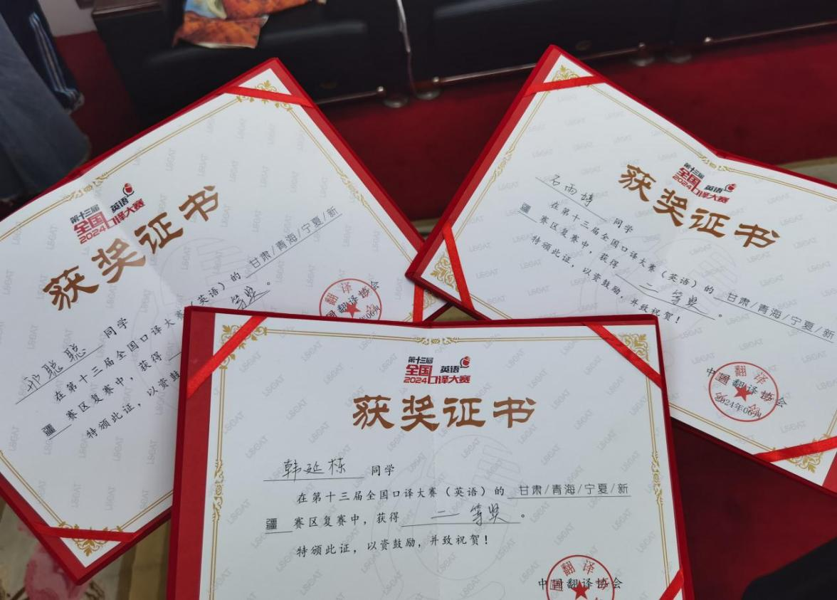 由鲁军虎老师指导的石雨婷、徐晓梅老师指导的邢聪聪和孔令会老师指导的韩延栋荣获二等奖;由鲁军虎老师指导的念静静、孔令会老师指导的朱星诺和赖红玲老师指导的贾雨菲荣获三等奖;由鲁军虎老师指导的王佳怡和徐晓梅老师指导的魏瑾(2021级法语专业)获得优秀奖。鲁军虎老师、徐晓梅老师和孔令会老师荣获“优秀指导教师奖”,鲁军虎老师荣获“优秀领队奖”。其中,石雨婷、邢聪聪和韩延栋3位同学成功晋级国赛,是我校继2018年和2023年以来第三次闯入国赛。