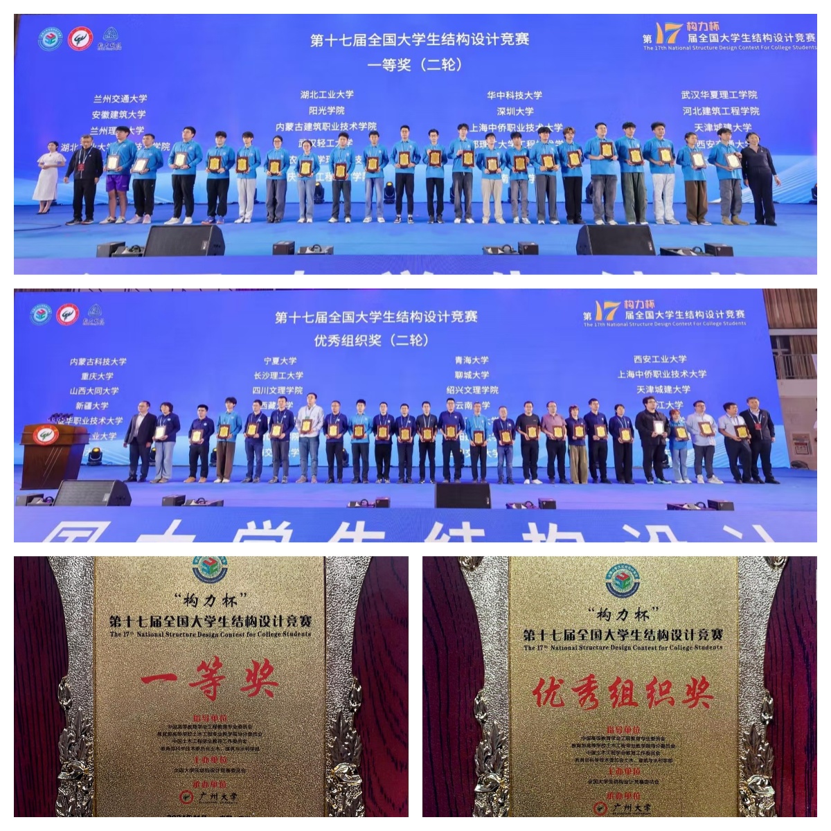 11月7日至11日,“构力杯”第十七届全国大学生结构设计竞赛总决赛在广州大学举行。由我校土木工程学院副院长于本田教授领队,刘廷滨、陈权、郭春香、王丽娟、孙建琴、夏文传、蒋代军、段志东等多位老师共同指导的刘通(铁道2202班)、贾慧林(土木2202班)、买文明(水利2101班)同学经过为期3天紧张激烈的比拼,最终获得竞赛一等奖,同时我校荣获“优秀组织奖”的佳绩。